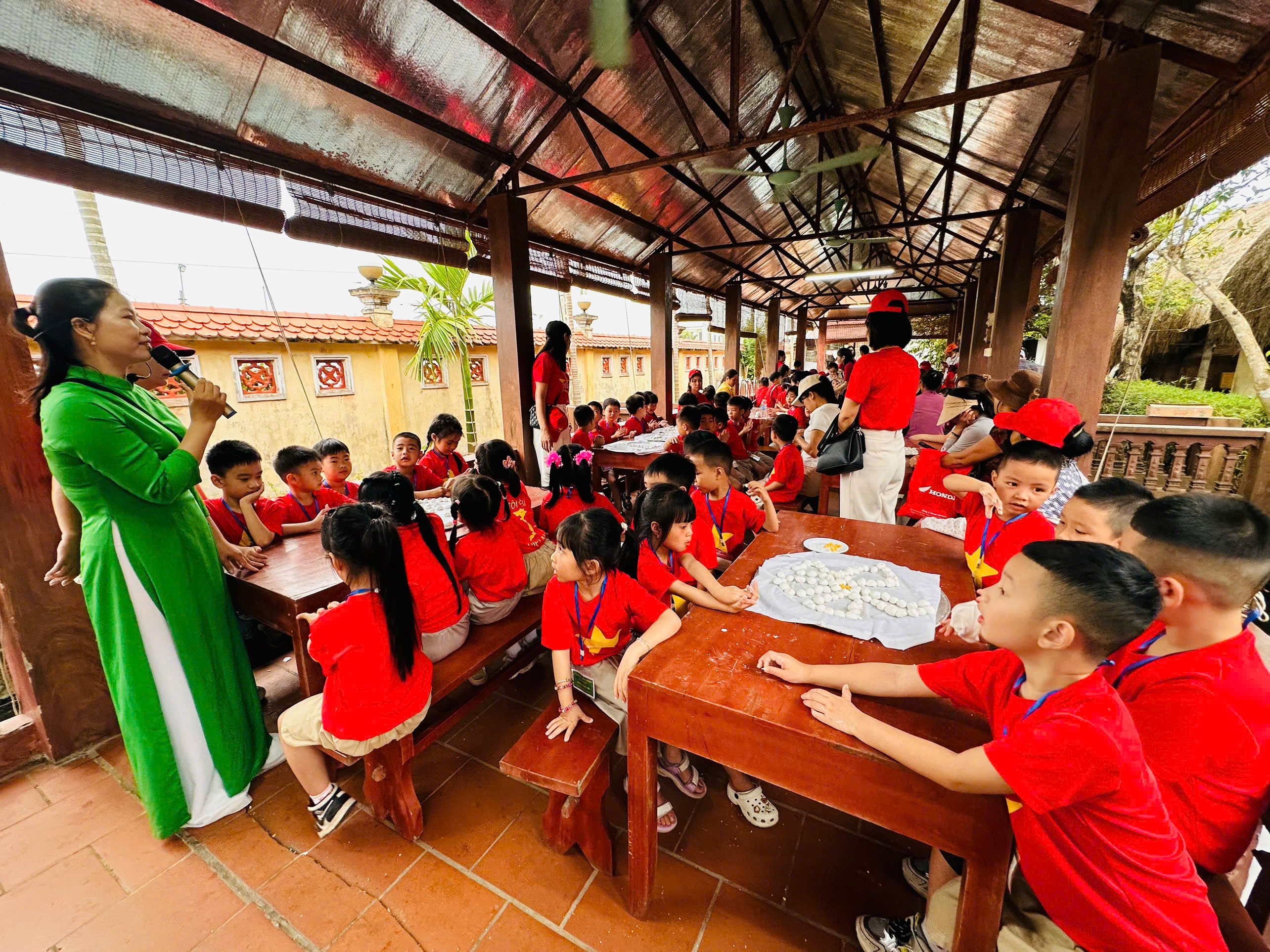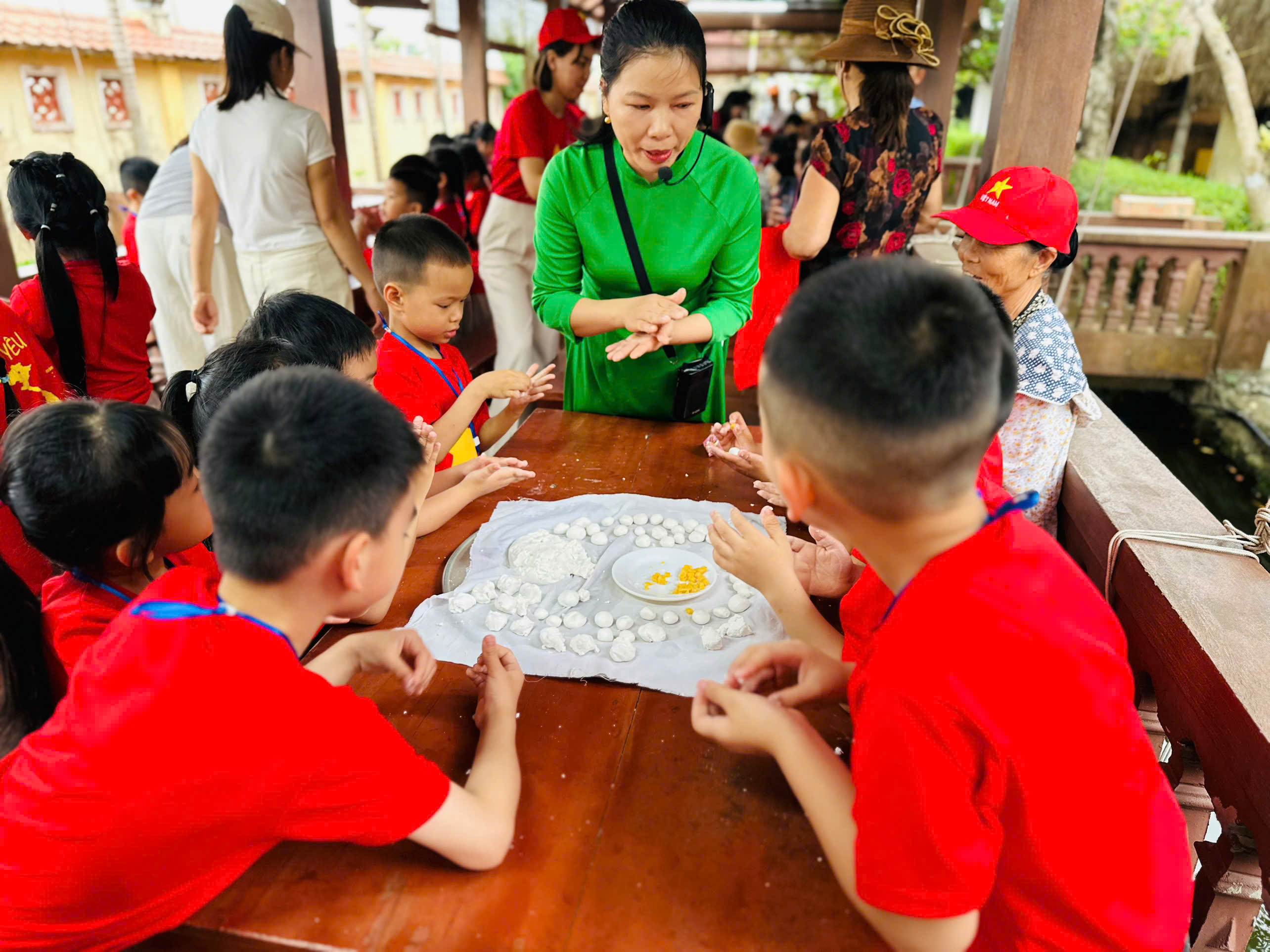 Trong chuyến đi, các bé được tham quan không gian trưng bày mang đậm nét văn hóa làng quê Việt Nam với nhiều hiện vật quen thuộc gắn liền với đời sống sinh hoạt của người nông dân xưa. Đặc biệt, hoạt động trải nghiệm làm bánh trôi đã mang lại nhiều niềm vui và sự hào hứng cho các bé. Dưới sự hướng dẫn của các cô giáo và các cô chú tại khu trải nghiệm, các bé đã được tự tay nặn bánh, thả bánh vào nồi và thưởng thức những chiếc bánh do chính mình làm ra.